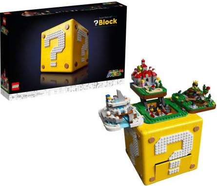 Atgaivinkite brangius prisiminimus konstruodami, demonstruodami ir žaisdami su LEGO® Super Mario 64™ ? kaladėle (71395). Praėjus dvidešimt penkeriems metams nuo „Super Mario 64“ vaizdo žaidimo pasirodymo, šį rinkinį sudaro konstruojama ? kaladėlė, kurią atidarius pasirodo atpažįstami žaidimo lygiai: Persikutės pilis, Bobombų kovos laukas, šaunus, šaunus kalbas ir mirtini lavos spąstai. Iš viso yra 10 legendinių personažų mikrofigūrėlių, kurias galima pastatyti detaliose scenose.